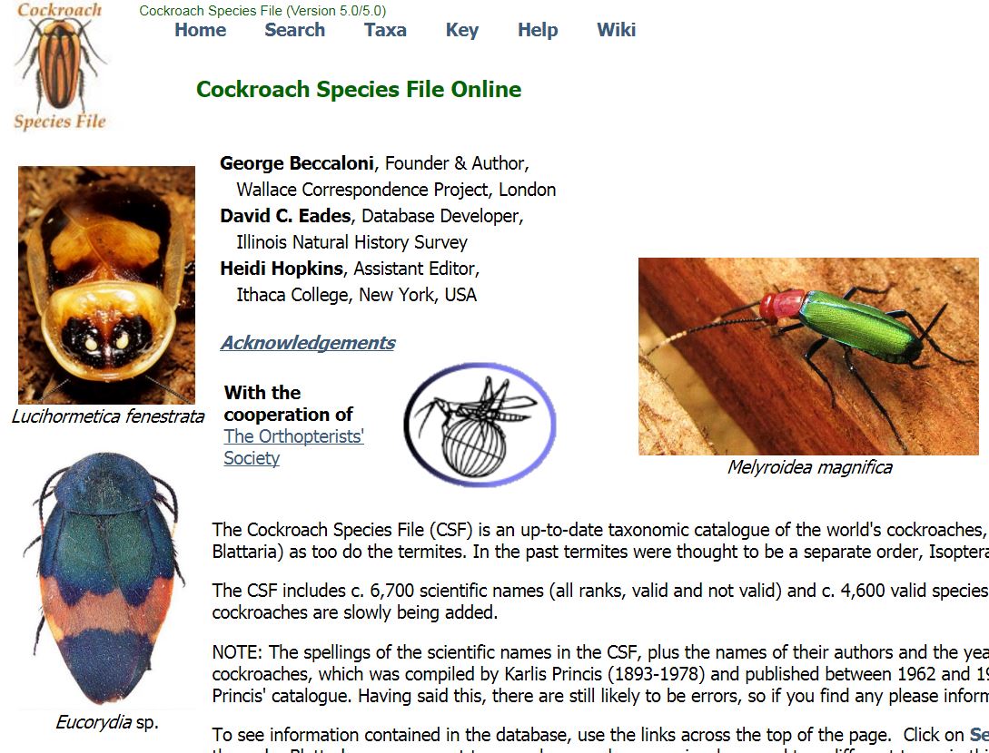 In addition to his work related to Alfred Russel Wallace (including the Alfred Russel Wallace Correspondence Project, Wallace Letters Online and The Wallace Website), Beccaloni is also a specialist in the taxonomy and ecology of butterflies and orthopteroid insects (especially cockroaches). He is the founder and author of the Cockroach Species File, a world catalog of cockroaches. Again, BHL provides access to key resources.