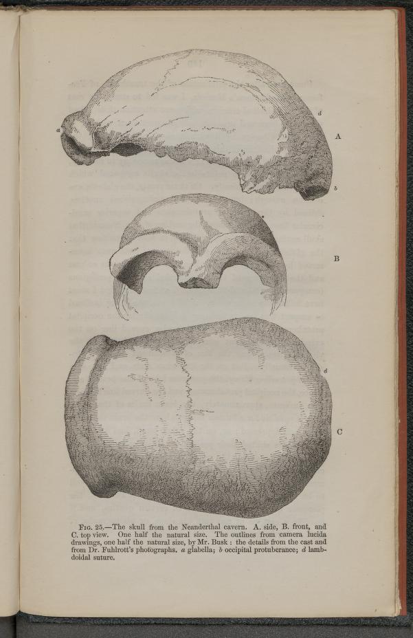 A close friend of Charles Darwin and a staunch public supporter of the theory of natural selection, Huxley used his expertise in embryology, paleontology and comparative anatomy to demonstrate an evolutionary relationship between humans and apes. In a series of public lectures between 1860-62, he presented research on anatomical similarities between humans and apes and discussed hominin fossil discoveries, including a skullcap from the first recognized Neanderthal Man which was unearthed in Germany in 1856.