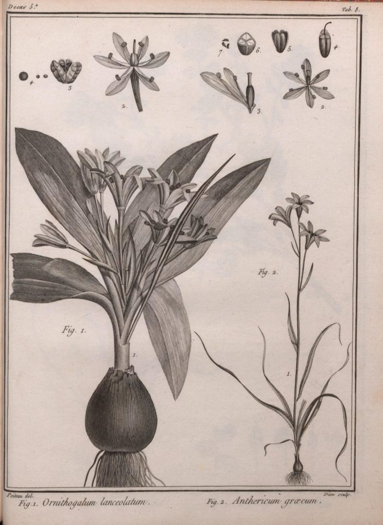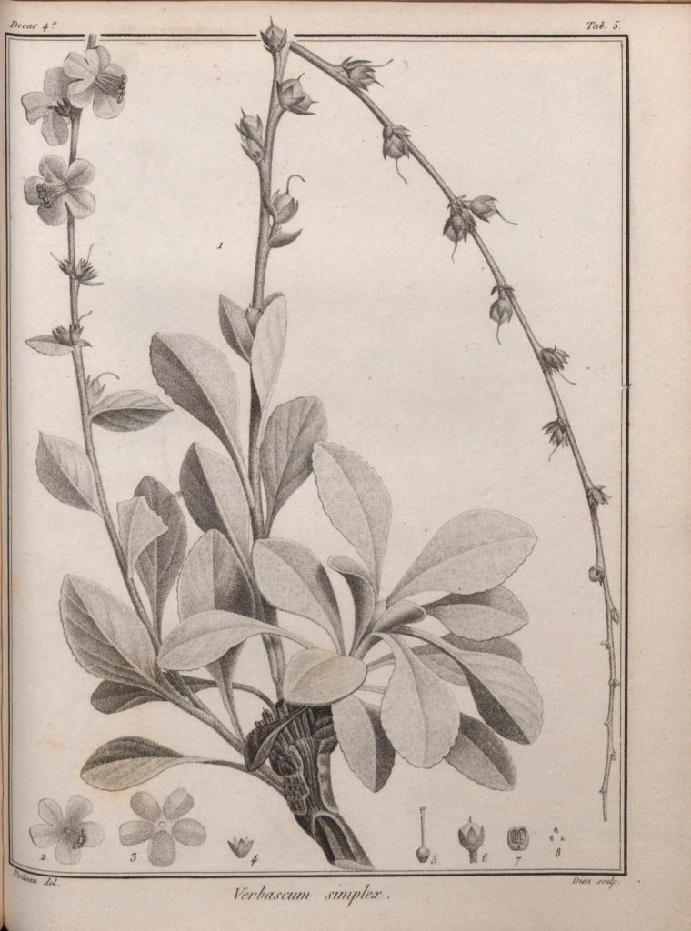 “Decas Primas” of Icones Plantarum Syriae Rariorum, issued in 1791, included 22 pages and 10 engraved plates after artwork by the Redouté brothers, Pierre-Joseph and Henri-Joseph. Nicknamed “the Raphael of flowers,” Pierre-Joseph is possibly the most celebrated flower painter in the entire history of botanical art. He published over 2,100 plates depicting over 1,800 species – many of which had never before been illustrated for publication – throughout his career (Tyrrell 2018). Born to a family of Belgian painters, both of Pierre-Joseph’s brothers, Henri-Joseph and Antoine-Ferdinand, also, unsurprisingly, became painters.