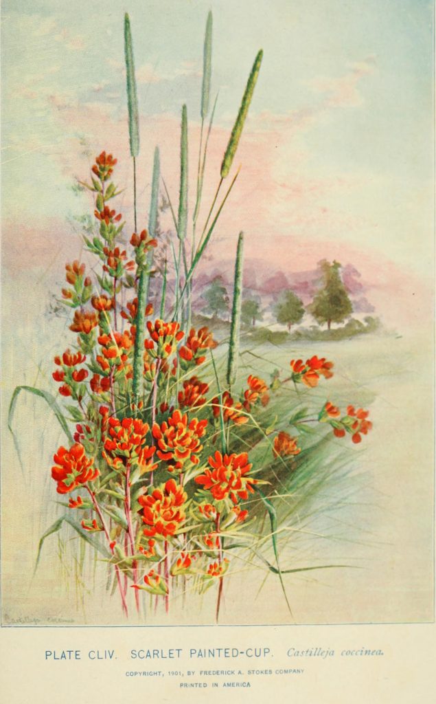 “Scarlet painted-cup. Castilleja coccinea.” Lounsberry and Rowan. Southern wild flowers and trees. 1901. Contributed in BHL by NCSU Libraries.
