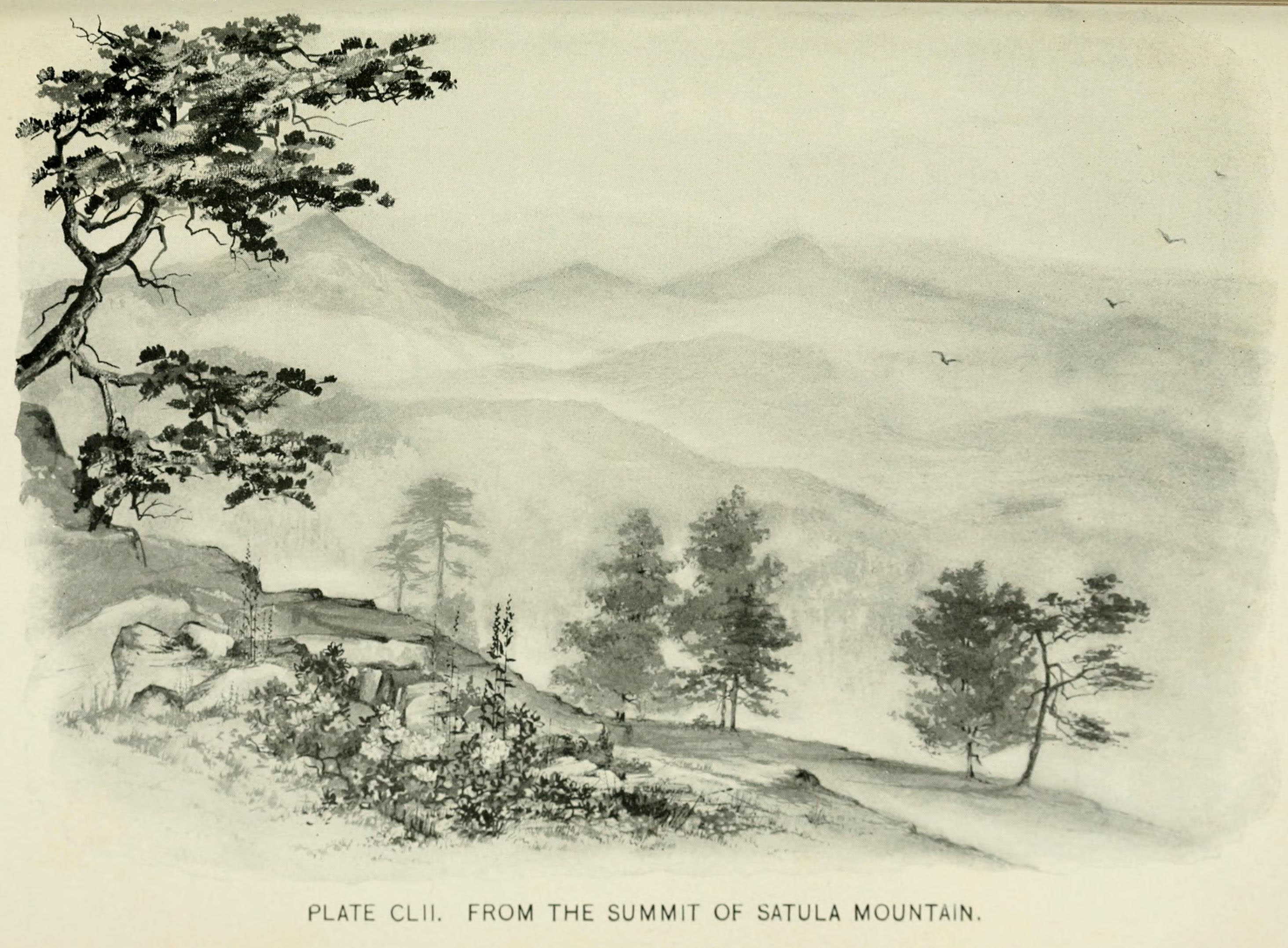 “From the summit of Satula Mountain.” Lounsberry and Rowan. Southern wild flowers and trees. 1901. Contributed in BHL by NCSU Libraries.