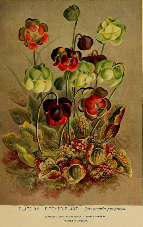 “Pitcher Plant, Sarracenia purpurea.” Lounsberry and Rowan. A guide to the wild flowers. 1899. Contributed in BHL by New York Botanical Garden, LuEsther T. Mertz Library.