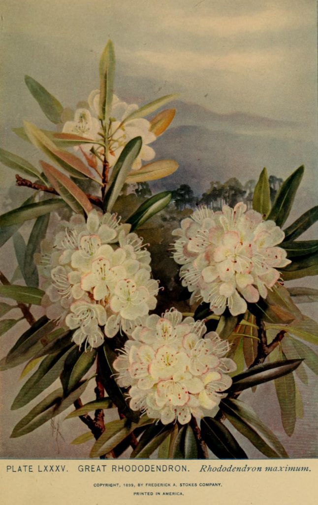 “Great Rhododendron, Rhododendron maximum.” Lounsberry and Rowan. A guide to the wild flowers. 1899. Contributed in BHL by New York Botanical Garden, LuEsther T. Mertz Library.