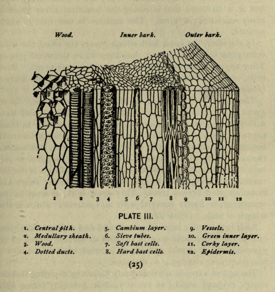 Diagram of wood and bark cell layers. Lounsberry and Rowan. A guide to the trees. 1900. Contributed in BHL by University of Toronto Earth Science Library (Noranda).
