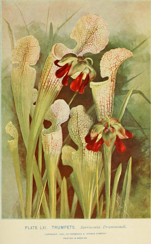 “Trumpets. Sarracenia Drummondi.” Lounsberry and Rowan. Southern wild flowers and trees. 1901. Contributed in BHL by NCSU Libraries.