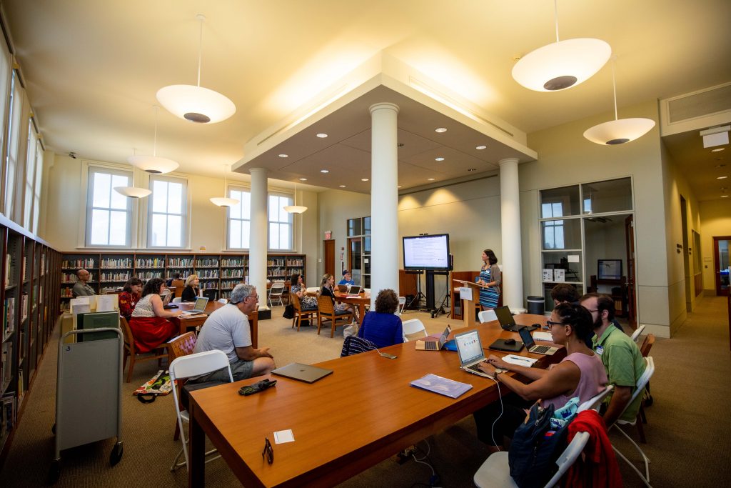 Attendees edit Wiki content at the LuEsther T. Mertz Library of the New York Botanical Garden. Photo by Marlon Co.