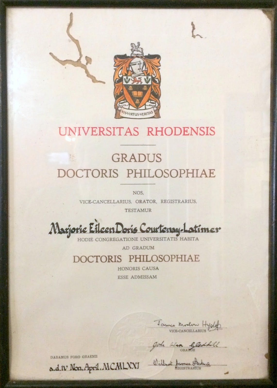 Marjorie Eileen Doris Courtenay-Latimer (1907-2004) is ubiquitously remembered and celebrated for her part in recognising that the large fish trawled by Capt. Hendrik Goosen and the crew of the Nerine in December 1938 was an astonishing find. This was to be identified as the first live coelacanth known to Western science. JLB Smith, the ichthyologist who first described it, named it Latimeria chalumnae after Marjorie, and the Eastern Cape river mouth near which it was found.