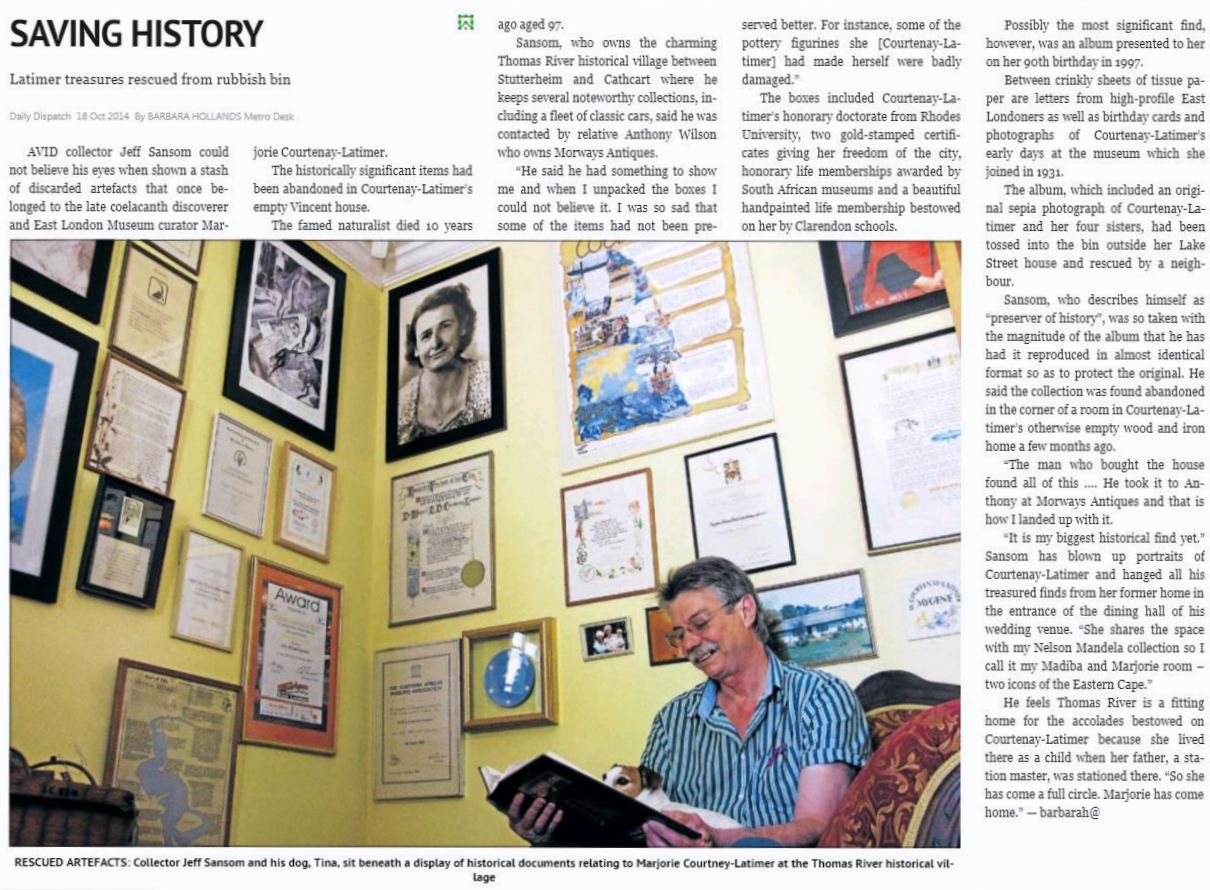 Contribution by Richard Liversidge, ornithologist, previously Director, McGregor Museum, Kimberley. Marjorie Courtenay-Latimer Collection,Thomas River Historical Village. (Pic: Mike Schramm)
