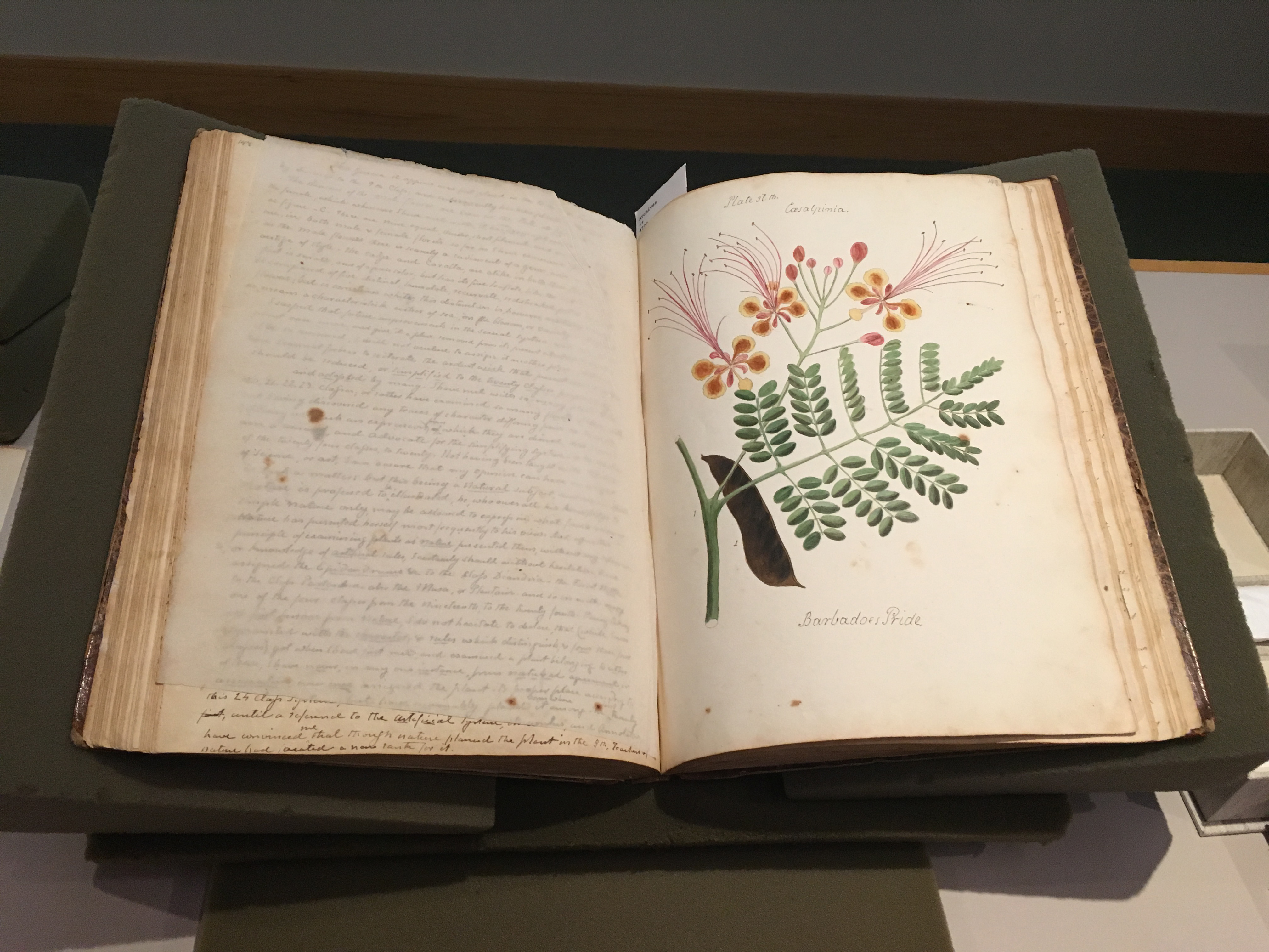 Anne Wollstonecraft’s manuscript, Specimens of the Plants & Fruits of the Island of Cuba, on display during the tour of the Rare Book and Manuscripts Collection at Kroch Library. Photo by: Grace Costantino.