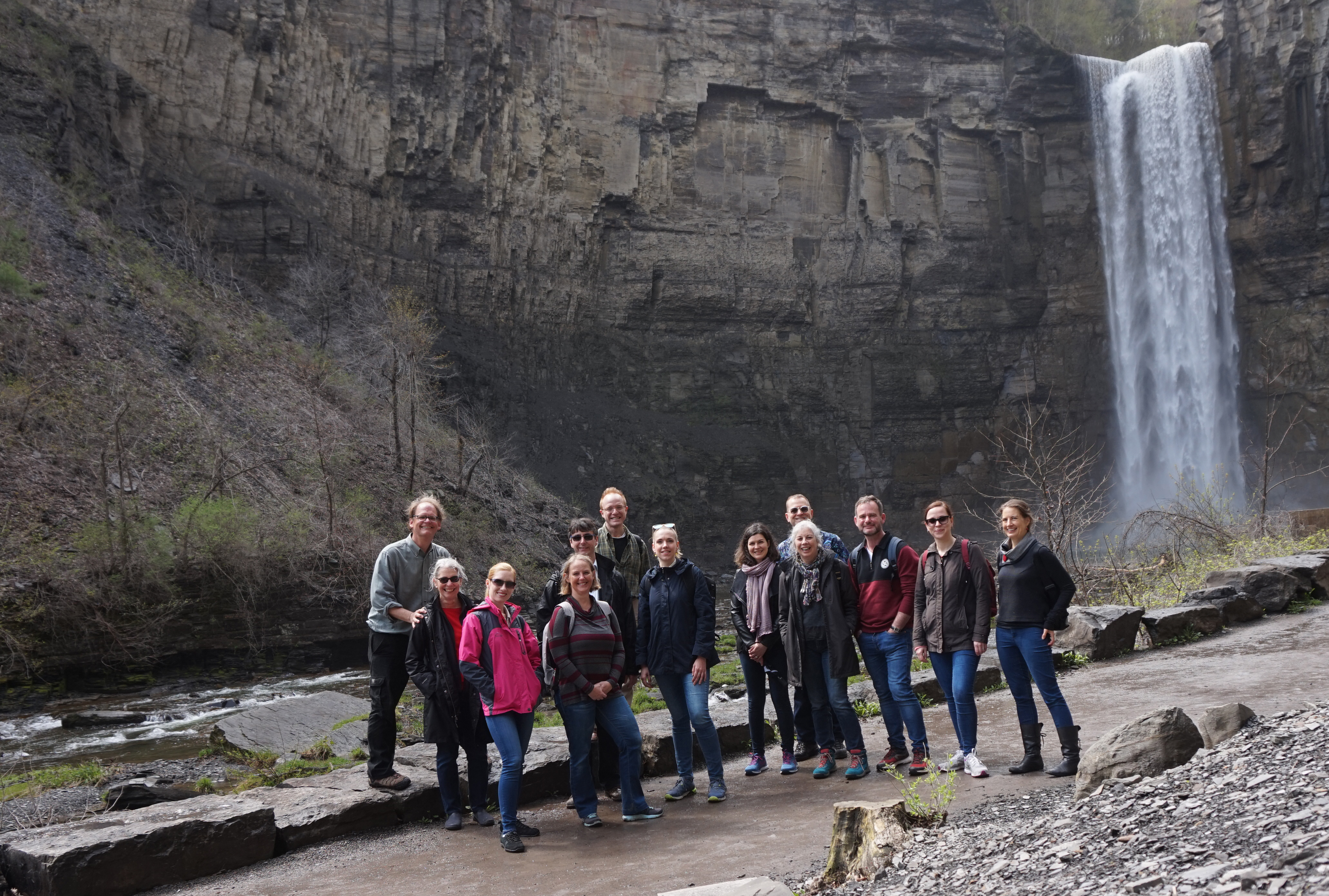 Group photo of meeting attendees at Taughannock Falls State Park during the Friday, 3 May excursion. Photo credit: Martin Kalfatovic.