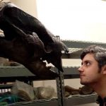 Ryan Haupt and giant sloth fossil photo taken by Emily Thorpe in the collections of the Denver Museum of Nature and Science.
