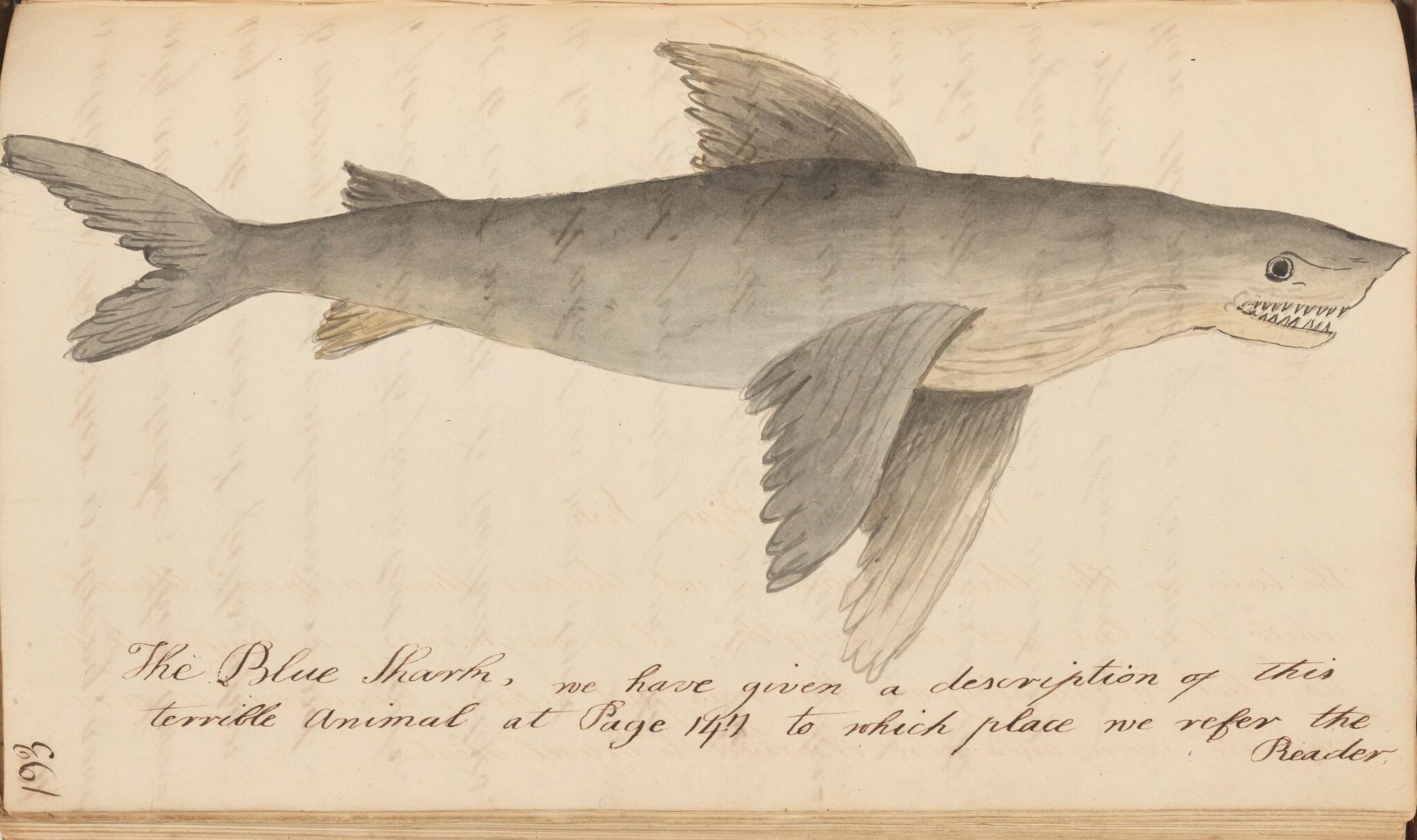 Digby drew his specimens from, amongst other places, the museums of Trinity College, Dublin, and the Dublin Society, now the Royal Dublin Society. Indeed the original specimens for some of his illustrations, such as the Giraffe or Cameleopard on page 116, the Kanguroo on page 8, or the Blue Shark on page 193, can be seen on display in WB Taylor’s 1819 aquatint Museum of T.C.D [Museum of Trinity College Dublin]. His text eschews entirely any semblance of scientific or taxonomic rigour, instead repeating anecdote and basic observation. Of the Blue Shark, for instance, he notes that “no fish can swim so fast as the shark, he outstrips the swiftest ships, such amazing powers, with such great appetites for destruction…”