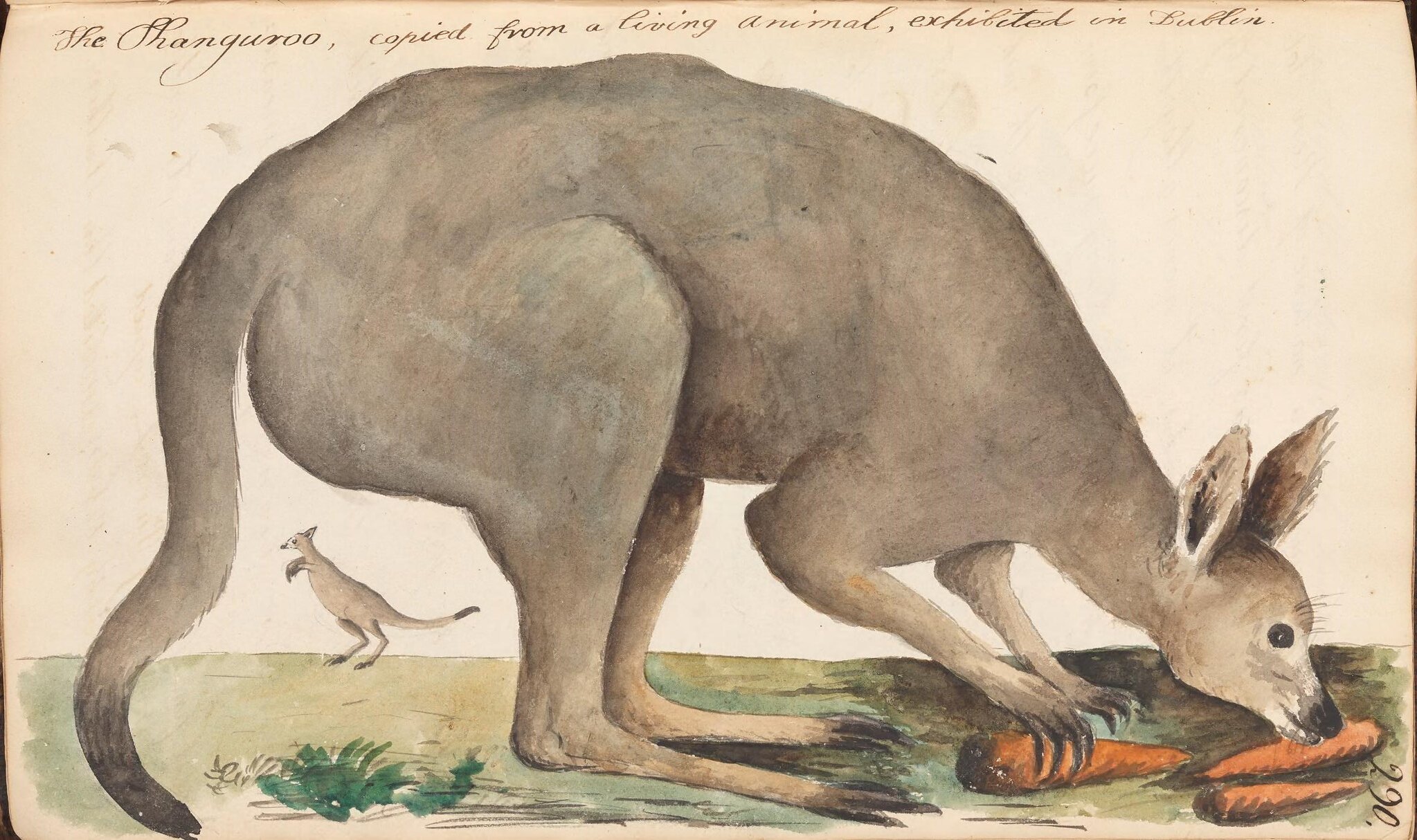 It would seem too that at the time he was putting together the volume a menagerie was operating in Dublin: his drawing of a kangaroo, for instance, is said to be “copied from a living animal, exhibited in Dublin.” At least 23 of his illustrations are from a local menagerie.