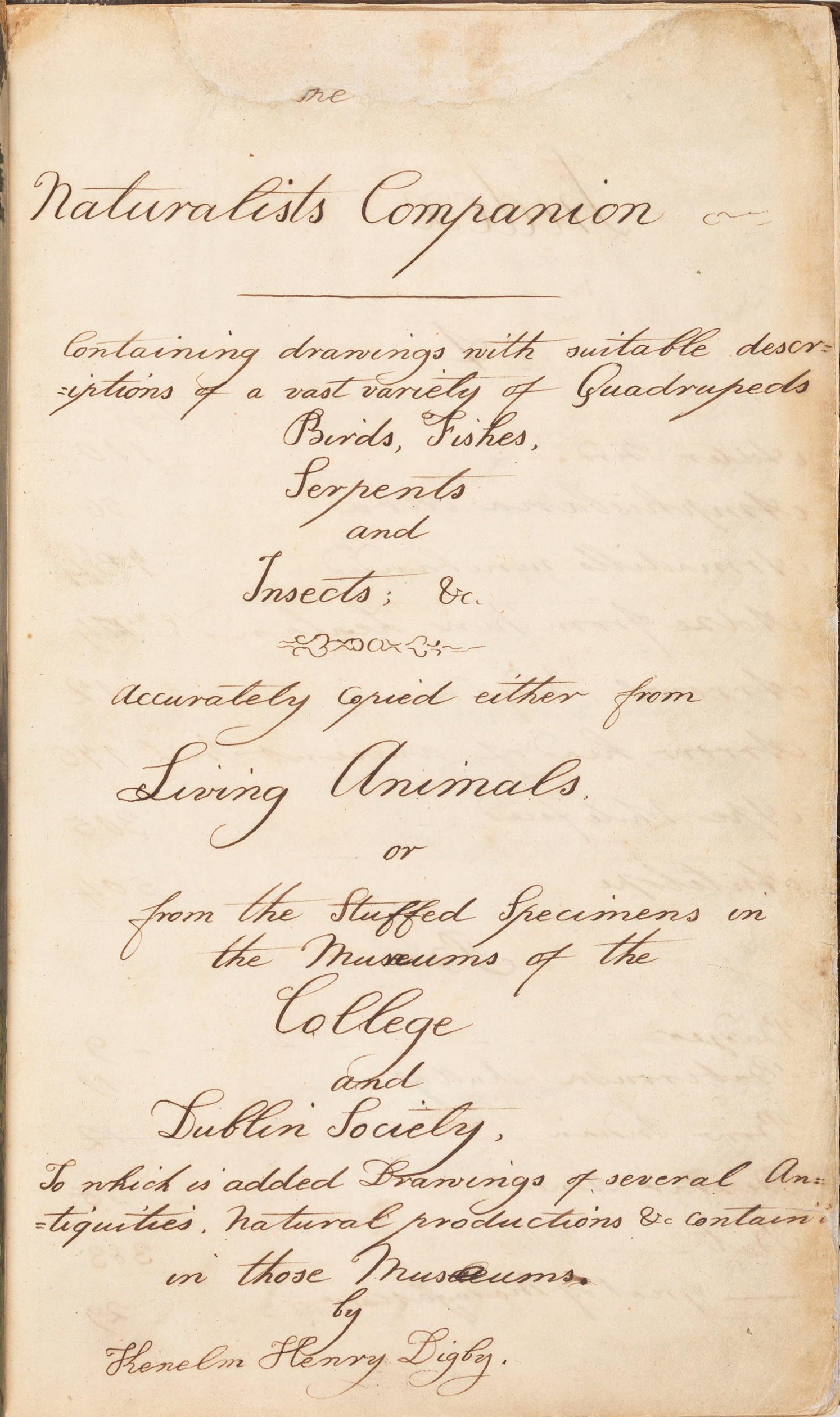 Title page. Digby, Kenelm Henry. The Naturalists Companion. 1810-1817. Contributed in BHL from the State Library of New South Wales.
