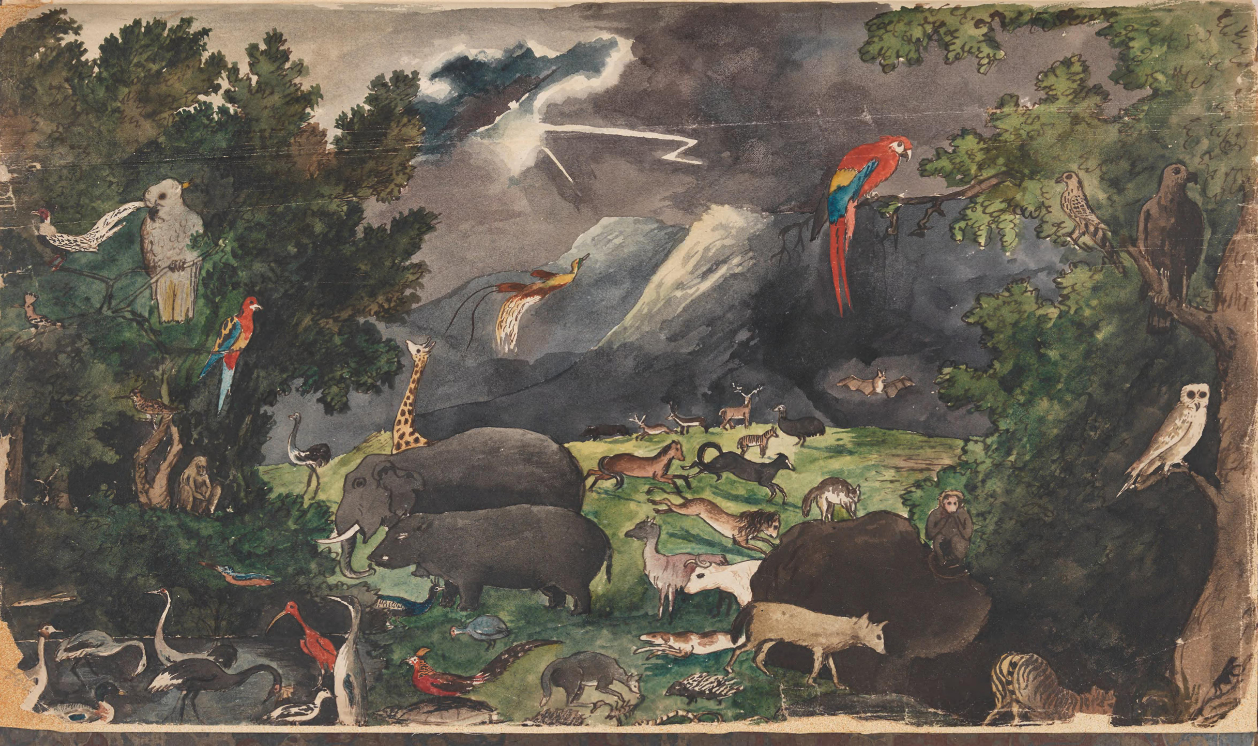 The scale of his undertaking was enormous and quixotic, reflecting a prodigious and admirable youthful enthusiasm, which he later brought to his prolific writings on the Catholic Church. The album contains some 525 pages of text, which comprises both his own words and extracts from the works of others, and about 450 illustrations, which he drew himself. Digby himself wrote that his intention was to highlight to all “but the most insensible mind … wonder at the formation and the various properties, and dispositions of the Brute Creation” (p.453). In other words, the book was a celebration of the diversity of God’s creation, rather than a rational attempt to impose order on the natural world.