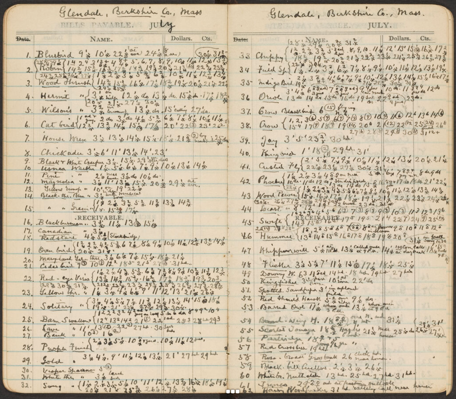 Figure 7: Species Occurrence Data from the Journals of William Brewster are now available on GBIF. Additional data deposits are planned in 2024. Data deposit: https://doi.org/10.15468/q45atb