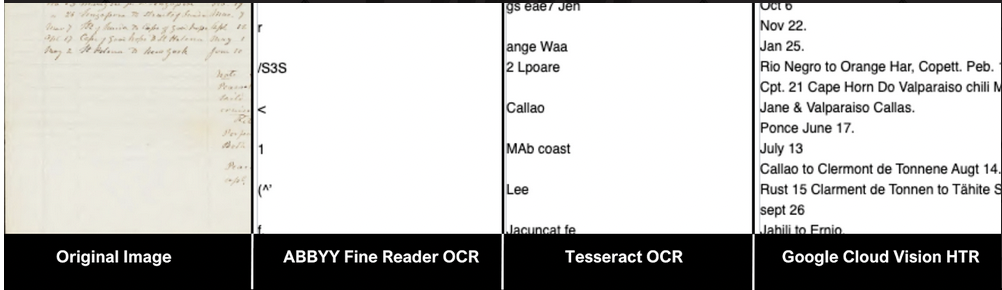 Handwritten Text Recognition (HTR) engines are a vast improvement over Optical Character Recognition (OCR) engines for processing handwritten materials, as seen from in this example from materials in BHL, but human transcription remains the gold standard in terms of quality. Image Credit: https://doi.org/10.3897/biss.7.112436